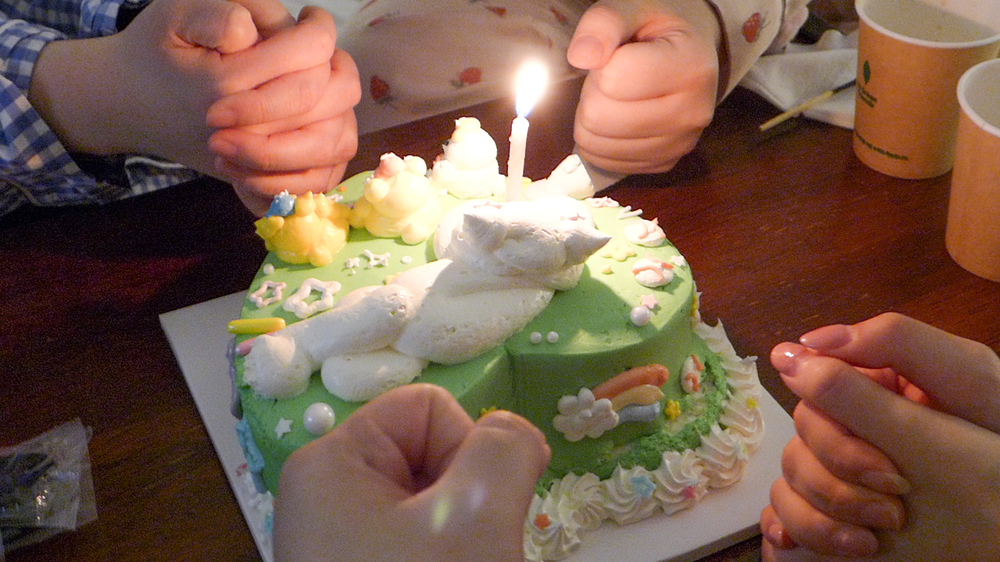 그리고 호텔 와서 소원 빌고 케이크 묵었다
