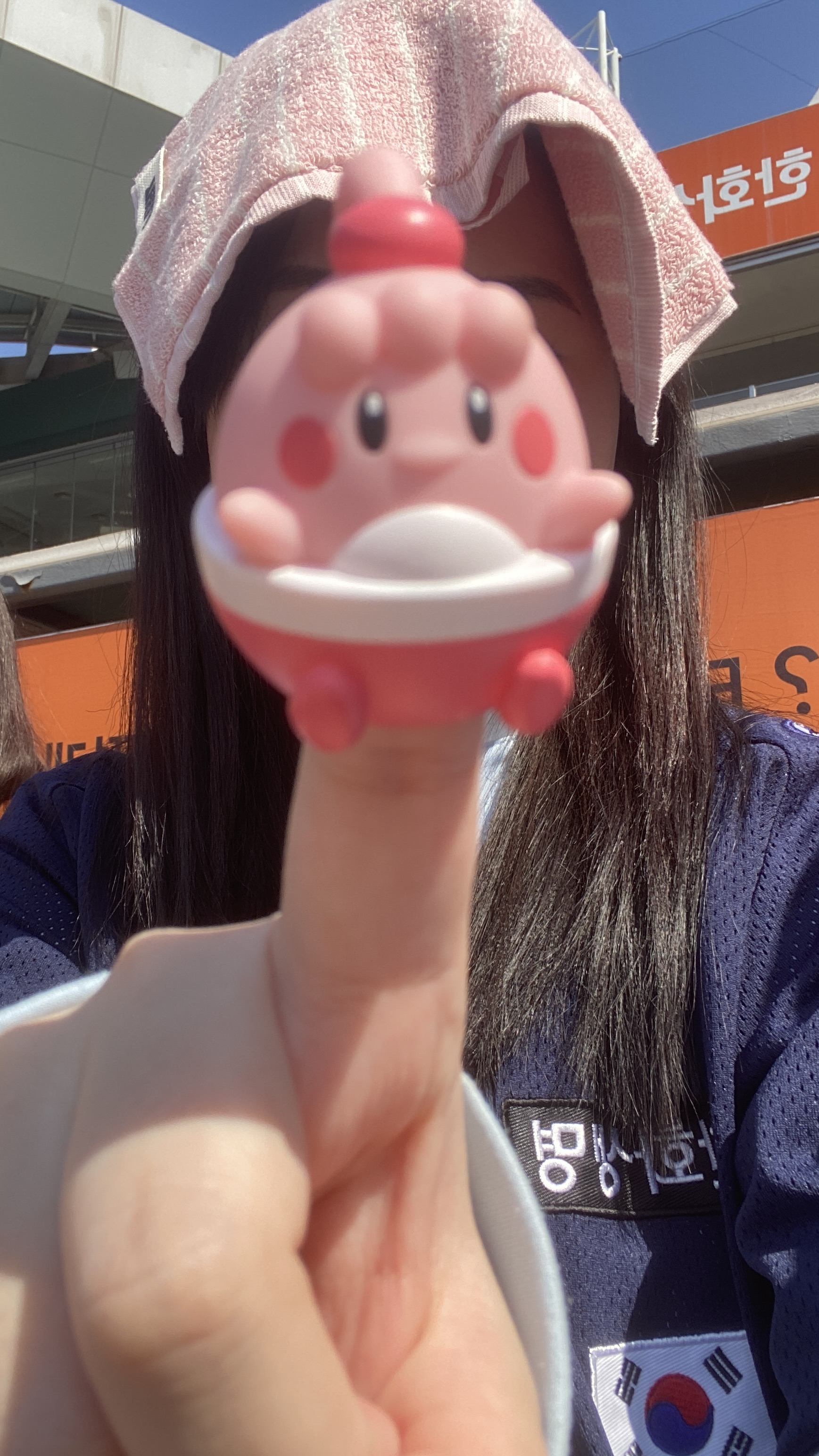 나 카메라 들고 있어서 주먹만 내밀었다