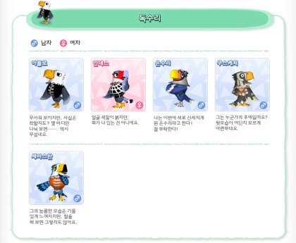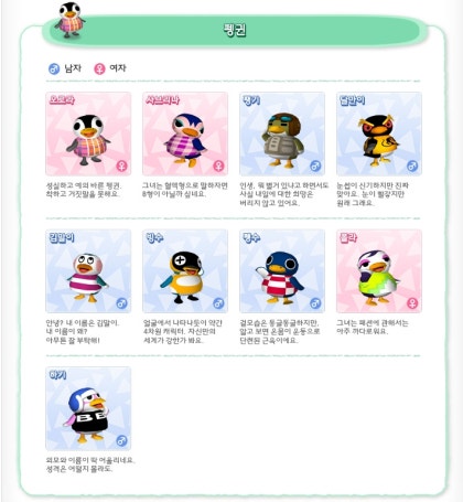 타운으로 놀러가요 동물의숲 주민 리스트